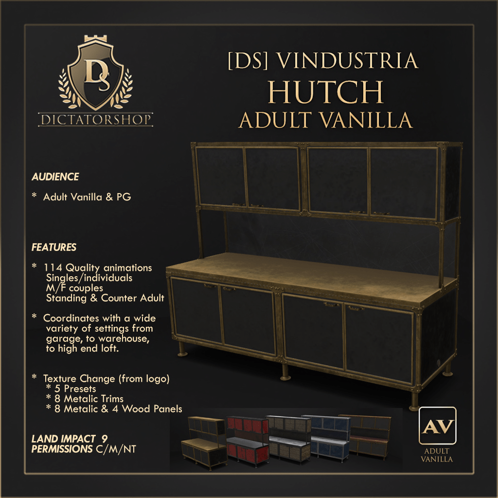 VINDUSTRIA HUTCH – comes in adult vanilla, pg and decor versions